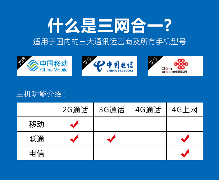 產(chǎn)品描述:移動(dòng)聯(lián)通電信三網(wǎng)4G上網(wǎng)移動(dòng)聯(lián)通2G3G打電話