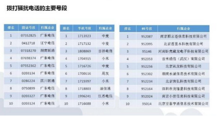 從通報(bào)中可以得知,中國移動(dòng)的整治效果較好。中國聯(lián)通和中國電信為電信騷擾提供了主要的通信支持。撥打騷擾電話的主要號(hào)段中,基本都是中國電信的號(hào)碼,占據(jù)前十名中的8席,其中廣東電信更是一舉占據(jù)了7席;中國聯(lián)通四川公司和湖南公司的號(hào)碼各占一席。