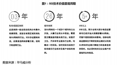 通過對行業(yè)本質(zhì)的審視和評估,該機(jī)構(gòu)認(rèn)為5G技術(shù)在垂直行業(yè)的發(fā)展周期將涵蓋以下三個時間段:在初期的0~3年,5G技術(shù)發(fā)展主要應(yīng)用于制造業(yè)及工業(yè)鏈中,用以促進(jìn)智慧城市和智能網(wǎng)絡(luò)的發(fā)展。在中期的2~6年,5G技術(shù)覆蓋面將延伸到服務(wù)行業(yè),娛樂、傳媒、醫(yī)療衛(wèi)生等大量垂直行業(yè)將從中獲益。5年之后,預(yù)計全球大部分電信運(yùn)營商已經(jīng)開始大規(guī)模部署5G網(wǎng)絡(luò),隨著移動運(yùn)營商不斷轉(zhuǎn)變商業(yè)模式以利用5G帶來的邊緣計算能力和急速連接能力,5G技術(shù)的發(fā)展?jié)摿⒏鼮橥怀龅仫@現(xiàn)。